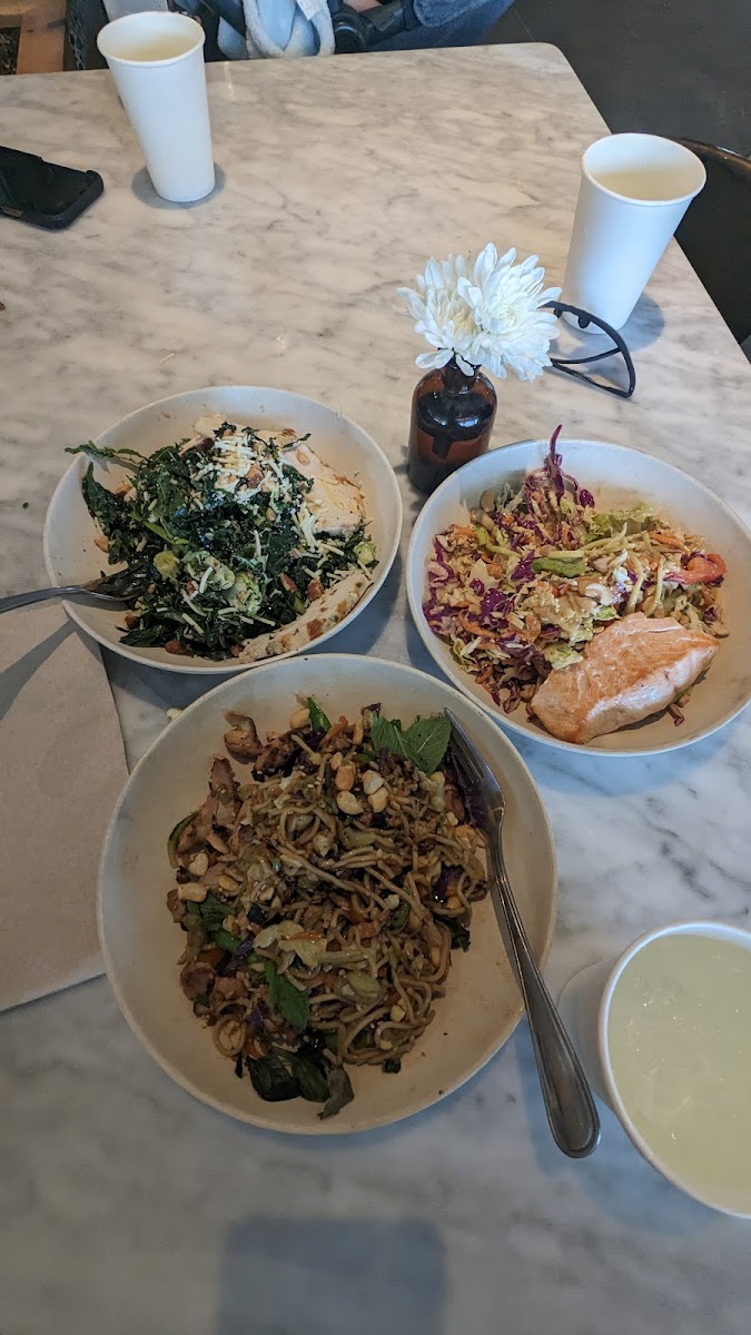 A coworker recommended this place and well I’m hooked! I go twice a week now as a treat to myself. The food is absolutely delicious and you can tell it is of great quality. I highly recommend the sweet potato fries, chilled sesame noodles, and avocado caesar salad!